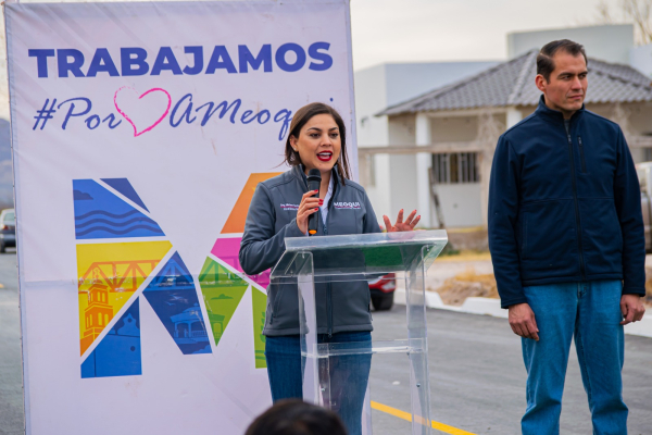 La Arq. Miriam Soto, alcaldesa del municipio de Meoqui, realizó la entrega oficial de la pavimentación de la calle 5a Sur en la comunidad de Nuevo San Lucas, obra que representa una inversión superior a los 600 mil pesos y que mejora de manera directa la calidad de vida de las familias, esto, en coordinación con el comité Pro Obras de la comunidad.