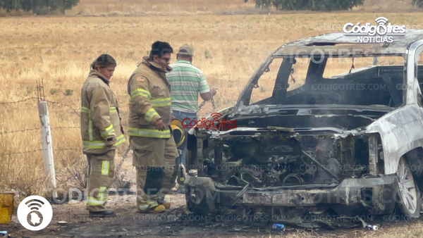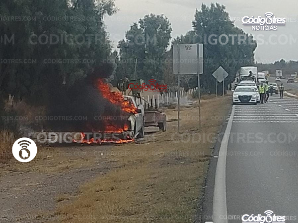 Saucillo.- Una pick up prendió en llamas en plena carretera federal 45 de sur a norte, es decir de Saucillo a Delicias pasando la caseta.