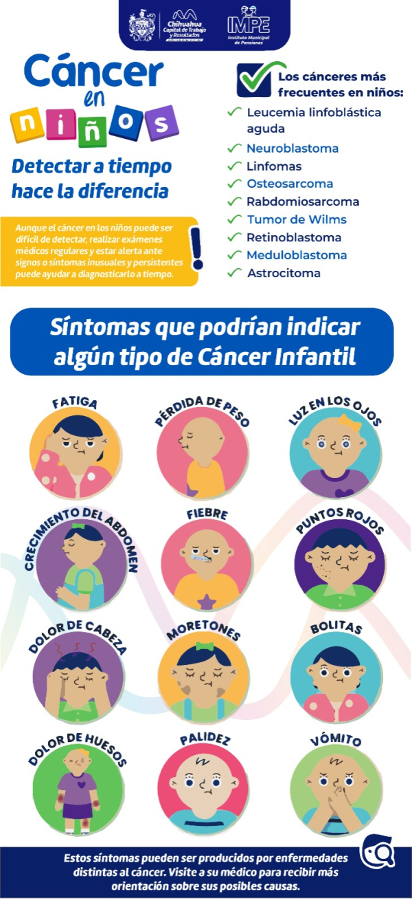 En el marco del Día Mundial contra el Cáncer Infanti, el Gobierno Municipal, por medio del Instituto Municipal de Pensiones (IMPE), comparte la importancia de una detección oportuna ante esta enfermedad, para un acompañamiento médico.