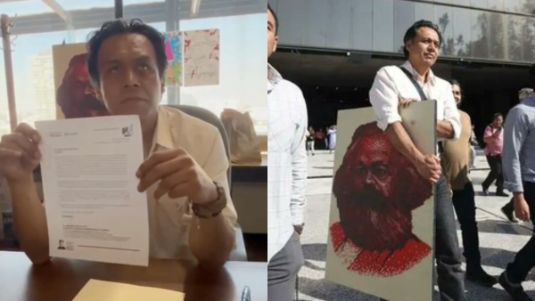 Arriaga salió de su oficina con una mochila y un cuadro con el retrato del economista y filósofo Karl Marx, mientras recibía el apoyo de trabajadores de la SEP.