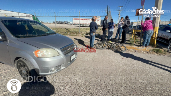 Delicias. – 2 ciclistas fueron chocados por un Chevrolet línea Aveo en la intersección de la Av. 10 sur y Av. Plutarco Elías Calles, por fortuna, no tuvieron lesiones graves.
