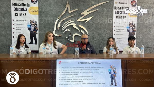 Delicias. – Esta mañana por medio de una rueda de prensa autoridades y estudiantes del CETis No. 87 presentaron la nueva oferta educativa para el ciclo escolar 2026-2027. La cual responde a las necesidades actuales, además resaltaron que sus instalaciones están bien equipadas para hacer amena la estancia de los estudiantes.