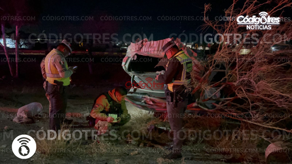 Durante la noche de este sábado se registró una aparatosa volcadura en el descenso del puente Cielovista, con rumbo al municipio de Saucillo, lo que generó una intensa movilización de cuerpos de emergencia.