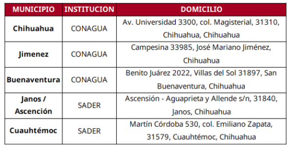 El Gobierno de México, mediante la Comisión Nacional del Agua (Conagua), hace un llamado a pequeños productores concesionarios de aguas nacionales del estado de Chihuahua a regularizar sus títulos de concesión de agua, mediante el Decreto de Facilidades Administrativas, con lo cual se facilitará el acceso a programas federales como el Programa Especial de Energía para el Campo en materia de Energía Eléctrica de Uso Agrícola (PEUA).