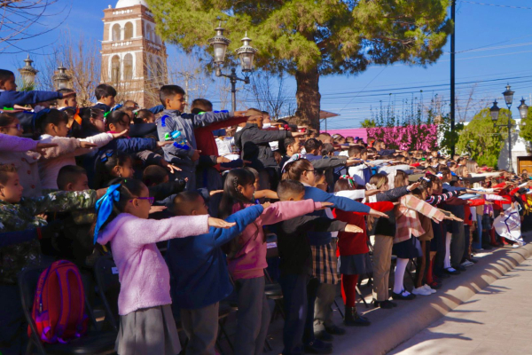 La actividad se llevó a cabo el 24 de febrero por la mañana en la explanada que se ubica frente al edificio de la presidencia municipal, donde el alcalde José Dolores Andujo Gómez tomó juramento a la bandera a las y los 280 niños que asistieron al evento.
