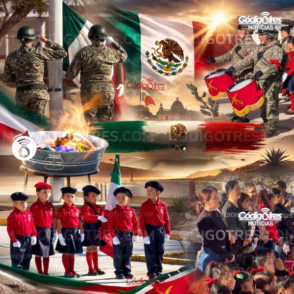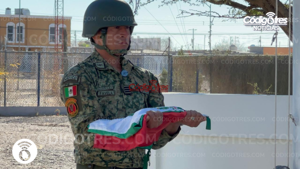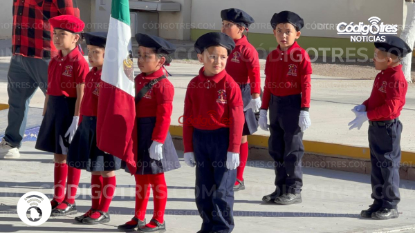 Delicias. - Esta mañana el Preescolar Gabriel Teporaca realizó un acto cívico para despedir conforme a la ley al lábaro patrio de la bandera nacional. Reafirmando los valores de identidad, respeto y amor a la patria. Siendo acompañados por personal del 66 Batallón de Infantería.