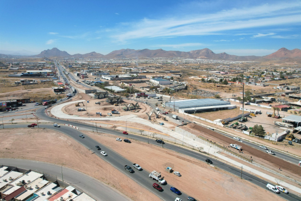H. Ciudad de Chihuahua, Chih., a 26 de febrero de 2026.- Como parte del objetivo del alcalde Marco Bonilla de mejorar la movilidad al oriente de Chihuahua Capital, la Dirección de Obras Públicas del Municipio avanza con la construcción del Paso Superior en la carretera Chihuahua–Aldama y avenida Fuerza Aérea.