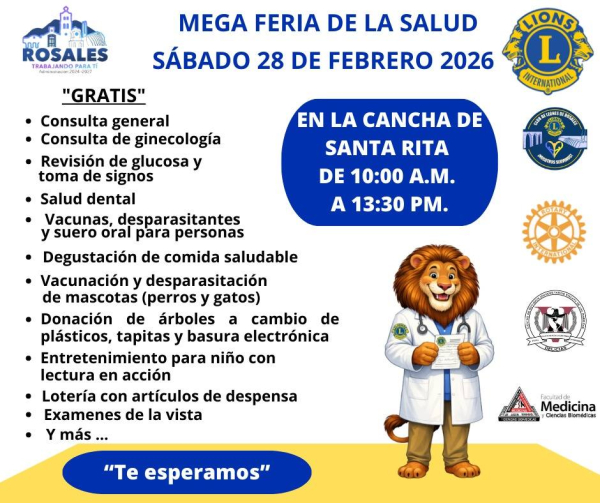 Cabe mencionar que el sábado 28 de febrero el club realizará una feria de la salud en Rosales en la Cancha de Santa Rita en donde llevarán consultas, medicamentos, vacunas, entretenimiento y más de manera totalmente gratuita. De 10 am a 1:30 pm por lo que se invita a aprovechar la oportunidad.