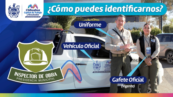 H. Ciudad de Chihuahua, Chih., a 27 de febrero de 2026.- Con el objetivo de prevenir los actos de corrupción por falsos Inspectores de Obra y Guardianes Ecológicos el Gobierno Municipal a través de la Dirección de Desarrollo Urbano y Ecología invita a la ciudadanía a conocer y verificar la autenticidad del personal adscrito a esta dependencia municipal.