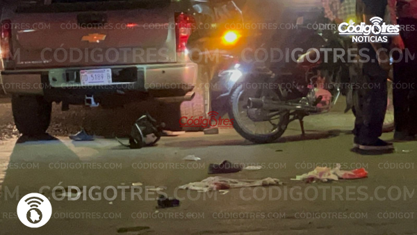 Tras el impacto, la llanta trasera de la camioneta pasó por encima del motociclista, provocándole severas lesiones y abundante hemorragia, por lo que su estado de salud fue catalogado como crítico.