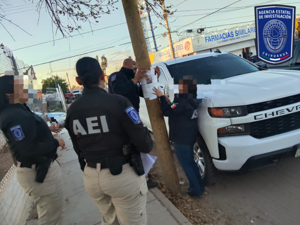 Personal de la Fiscalía de Distrito Zona Noroeste, realizó un operativo coordinado con la Agencia Estatal de Investigación, para la pega y difusión de pesquisas de personas víctimas de desaparición forzada, ausentes o extraviadas, en el municipio de Nuevo Casas Grandes.