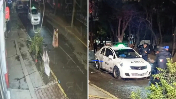 Los hechos quedaron registrados a través de las cámaras de seguridad de un inmueble, justo en el momento en el que pasan los uniformados empujando la unidad. Hasta el punto en donde quedó el taxi, arribaron elementos de la SSC y del municipio de Naucalpan.