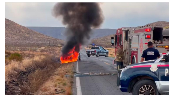Un incendio vehícular ocurrió sobre la carretera que conduce de Aldama a Ojinaga. Una falla mecánica lo provocó y el suceso generó una importante movilización de policías municipales de Aldama y bomberos.