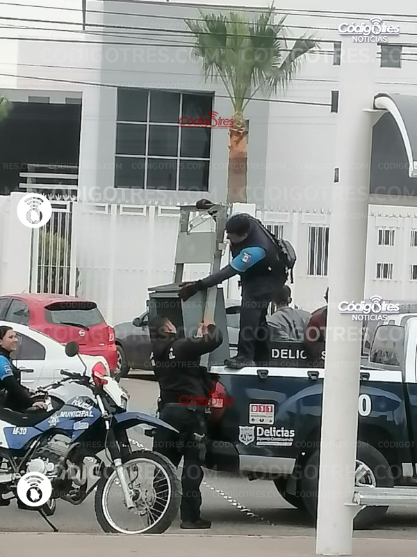 El hecho se dio en la Av. Tecnológico y Av. Ferrocarril. 2 hombres fueron esposados y subidos a la unidad 30 de Seguridad Pública Municipal, al lugar acudieron también 4 unidades motorizadas.