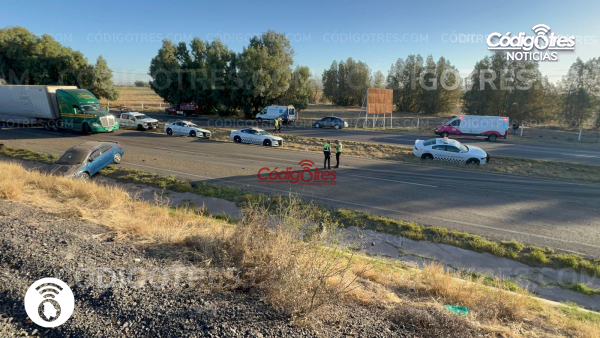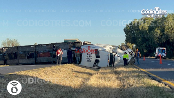 El tráiler, identificado con el número económico 09-BG-8D, transportaba ocho vehículos de agencia en su plataforma. Tras la volcadura, cuatro de los automóviles se desprendieron y quedaron sobre la cinta asfáltica completamente dañados.