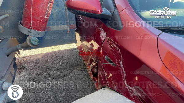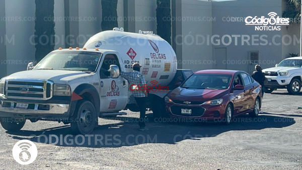 Un accidente vial se registró en el cruce de la avenida Conai y la calle Quinta Poniente, donde se vieron involucrados un automóvil particular y una pipa de gas, dejando como saldo daños materiales de consideración.