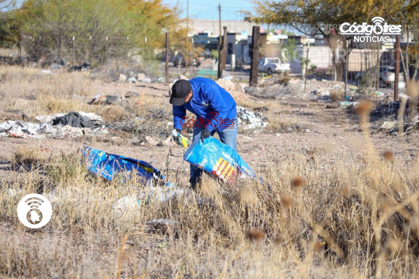 Delicias. – El fin de semana regidores, personal de Medio Ambiente, vecinos y voluntarios, sumaron esfuerzos para realizar una limpieza a la Av. De Las Moras, justamente en la sección que colinda con el Fraccionamiento Cumbres del Deporte.