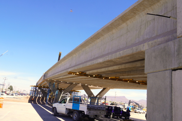 El Gobierno Municipal, a través de la Dirección de Obras Públicas, avanza en la construcción del Paso Superior ubicado en la intersección de la carretera Chihuahua-Aldama y la avenida Fuerza Aérea, una obra que impulsará la movilidad en este sector.