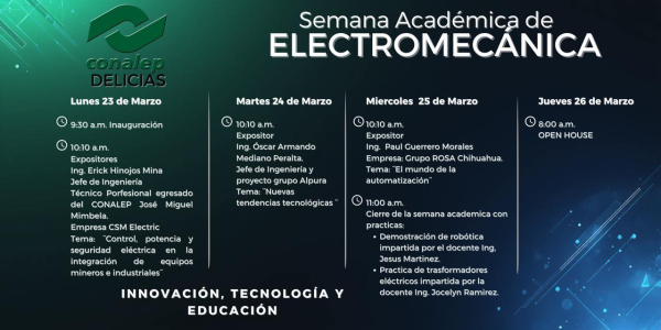Delicias. – Los alumnos y autoridades educativas hoy acudieron con entusiasmo al CONALEP de Delicias pues dio arranque a la Semana Académica de Electromecánica una oportunidad para aprender y desarrollar habilidades nuevas de la mano de expertos.