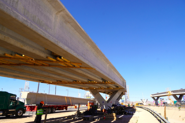 Con diversas actividades en distintos frentes de trabajo, esta emblemática obra sigue tomando forma día con día. Actualmente se mantiene el montaje de trabes de concreto reforzado, de las cuales más de 40 ya han sido colocadas, además de realizarse trabajos de cimbrado para la losa superior, como parte de la conformación de la superestructura del puente.
