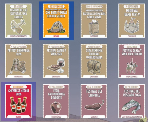 El municipio de Meoqui forma parte del calendario estatal “Chihuahua es Para Ti, Conócelo” 2026, con la realización de dos importantes eventos que fortalecerán el turismo y la actividad económica en la región: el CheveFest, el próximo 3 de octubre, y “Historias Cortas de Terror: Cine entre Tumbas”, edición Meoqui, programado para el 5 de septiembre.