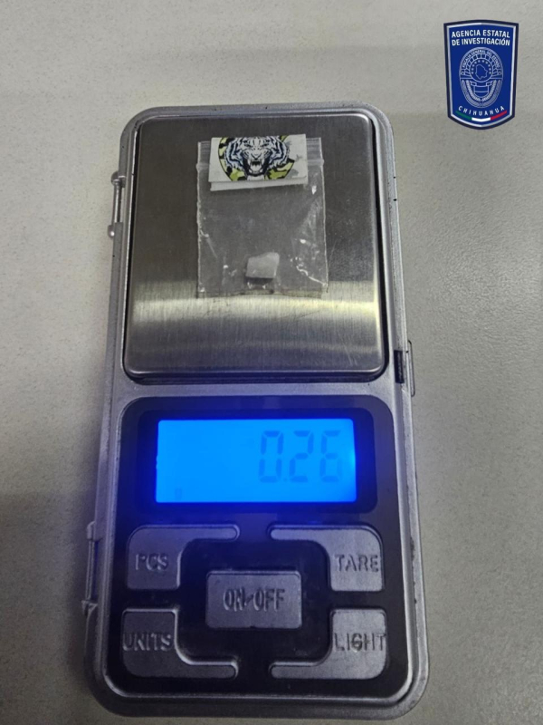 La otra intervención fue realizada en la calle Daniel Andrade de la colonia Tierra y Libertad, sector B, en donde se detuvo a Giovany Gabriel D. J., de 30 años de edad, a quien se le aseguró un envoltorio de plástico con .26 gramos de cocaína en piedra con una etiqueta de un tigre blanco.