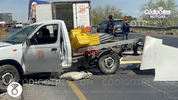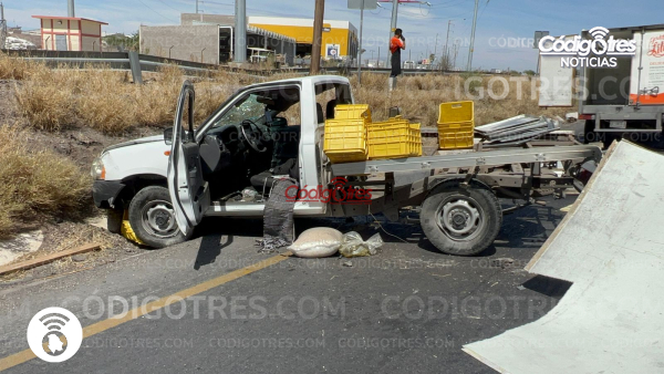Meoqui. – Un empleado del negocio “Gorditas Lily”, hoy salió a trabajar como todos los días en el camión de reparto de insumos, sin imaginarse que tendría una volcadura en la carretera Federal 45, a la altura del kilómetro 147, a pocos metros del entronque que conduce a Julimes.