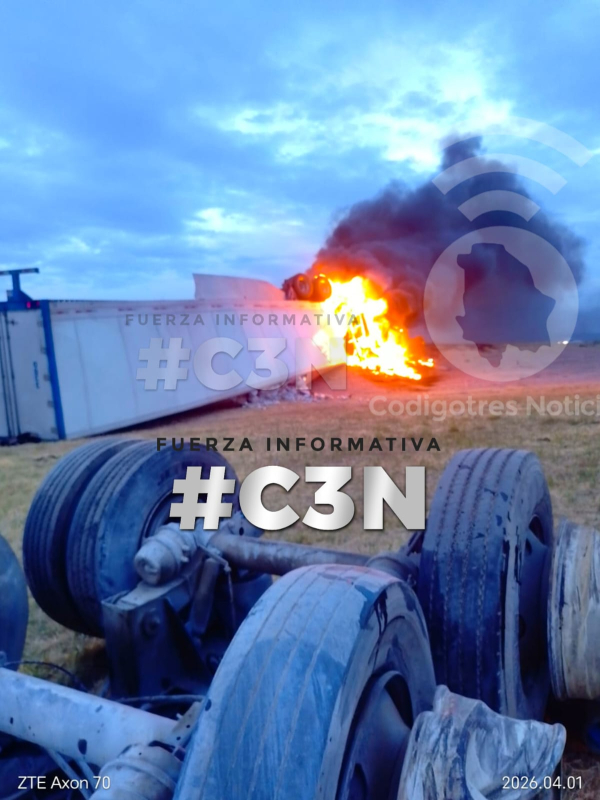 LA CRUZ.- Un accidente vial se registró este miércoles en el que un tráiler se volcó y posteriormente se incendió en el kilómetro 92 de la carretera Camargo a La Cruz, en sentido norte a sur, a la altura del Puente El Colorado, en el municipio de La Cruz.