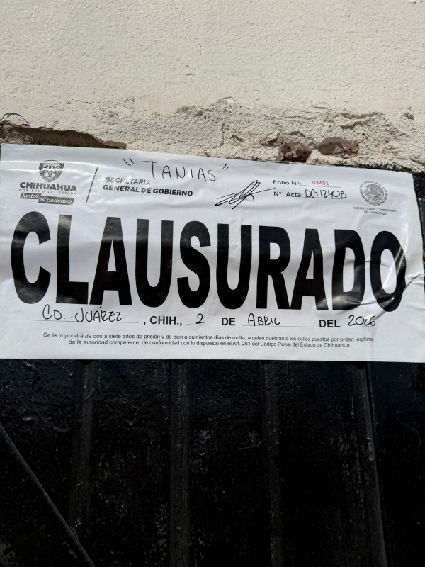 Dichas acciones dieron como resultado un total de 9 clausuras, de las cuales una fue en Chihuahua, una en Cuauhtémoc, una en Aldama, una en Cusihuiriachi y cinco en Ciudad Juárez.