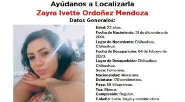 El cateo realizado en una vivienda de la colonia Dale tuvo como objetivo principal la búsqueda de indicios relacionados con la desaparición de Zayra Ivette Ordóñez Mendoza, joven de 23 años reportada como ausente desde 2023 en la ciudad de Chihuahua.