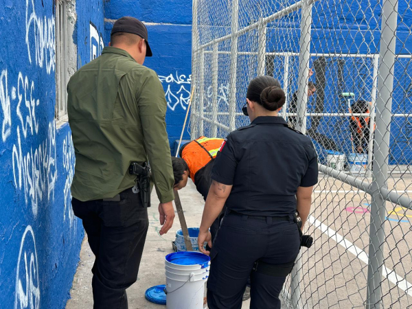 H. Ciudad de Chihuahua, Chih., 10 de abril de 2026.- Como parte de las acciones de la Unidad de Atención a Pandillas de la Dirección de Seguridad Pública Municipal, se realizan intervenciones en distintos puntos de la ciudad donde se han detectado pintas o grafiti, con el objetivo de recuperar espacios afectados.