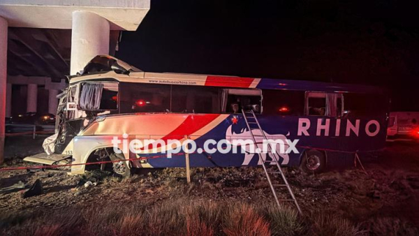 Los hechos ocurrieron la madrugada del jueves pasado cuando un camión de pasajeros que transportaba derechohabientes del IMSS, se impactó contra la columna de concreto del puente del Libramiento Oriente.