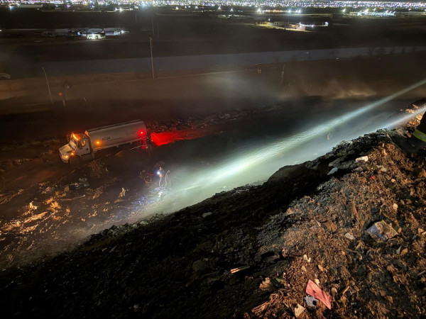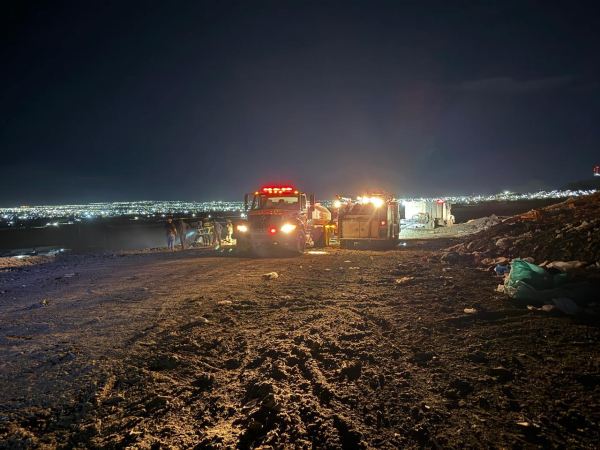 El incidente, comenzó poco antes de las 8:00 PM de este viernes 17 de abril en uno de los taludes de la ampliación de la celda dos, por lo que de inmediato se comenzaron las labores por parte de personal de la dirección de Servicios Públicos Municipales en lo que los elementos de Bomberos arribaron al lugar.