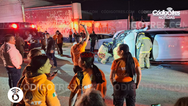 Tras el choque, se reportó que la mujer quedó prensada al interior del vehículo afectado, por lo que fue necesaria la intervención de elementos del Cuerpo de Bomberos, específicamente de la unidad 21, quienes realizaron maniobras para liberarla junto a elementos voluntarios de Halcones de Conchos.