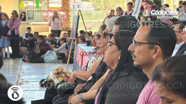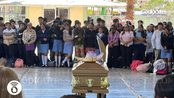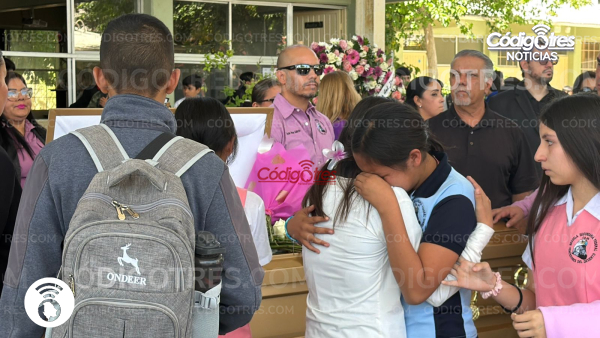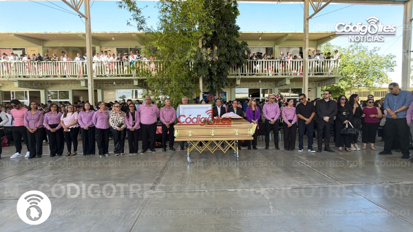 Delicias. - La maestra Laura Bustamante hoy recibió un emotivo homenaje en la Secundaria 96 ‘’Vencedores del Desierto’’, en donde se sintió el gran pesar de su pérdida debido a su fallecimiento el pasado viernes a causa de un accidente vial.