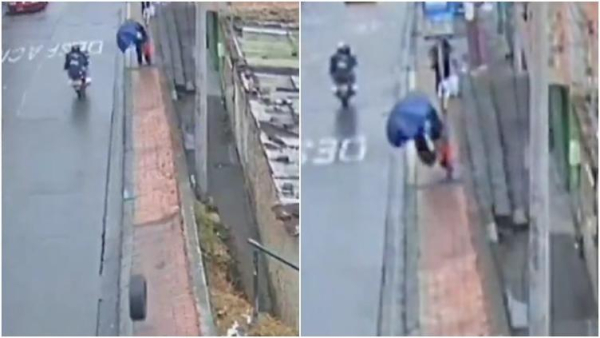 Los hechos se dieron el 17 de abril en la ciudad Bolívar, Colombia, donde una cámara de seguridad en el barrio Perdomo logró captar el momento en que una mujer terminó herida de gravedad.
