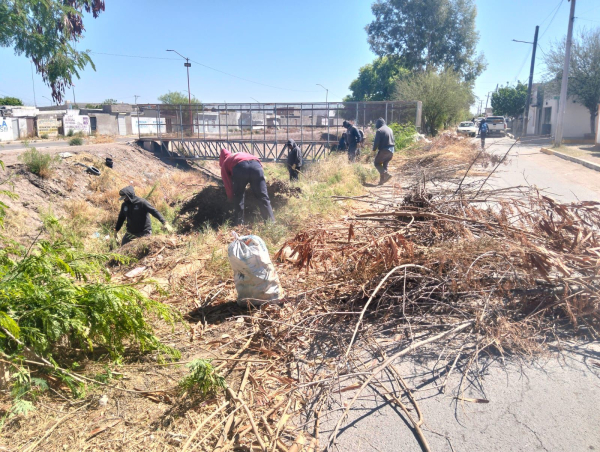 El dren ubicado en la colonia Obrera también fue objeto de intervención, donde se efectuaron trabajos de limpieza para evitar acumulaciones de basura y mejorar el flujo del agua, reduciendo riesgos para la población.