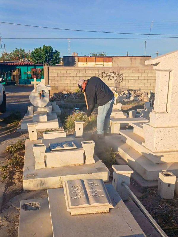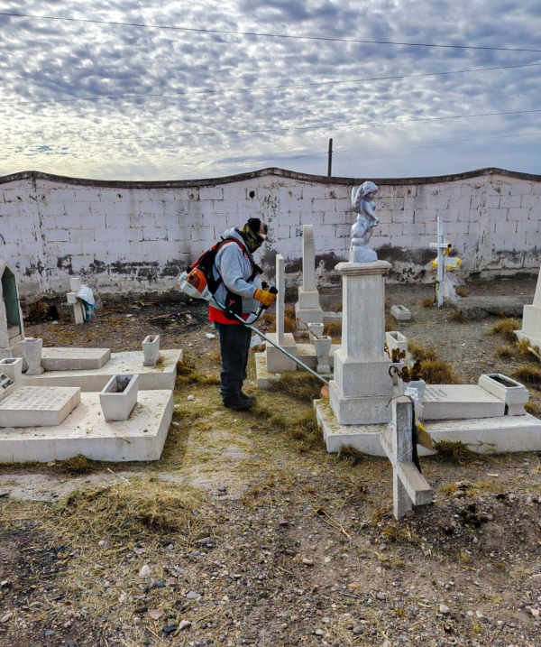El Gobierno Municipal de Meoqui, a través de la Dirección de Servicios Públicos Municipales, continúa con labores de limpieza y mantenimiento en los panteones del municipio, tanto en la cabecera municipal como en la comunidad de Los Jáquez, reforzando estas acciones ante la proximidad del 10 de mayo.