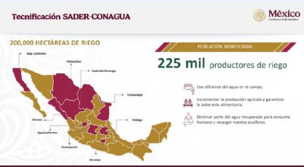 A través de Sader-Conagua, contemplan tecnificar a 225 mil productores de riego con 200 mil hectáreas.