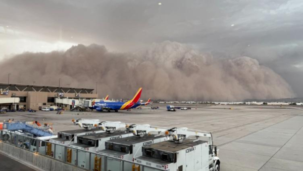Una enorme nube de polvo cubrió este lunes la ciudad de Phoenix, Arizona, causando baja visibilidad y dejando escenas impresionantes en varias zonas.