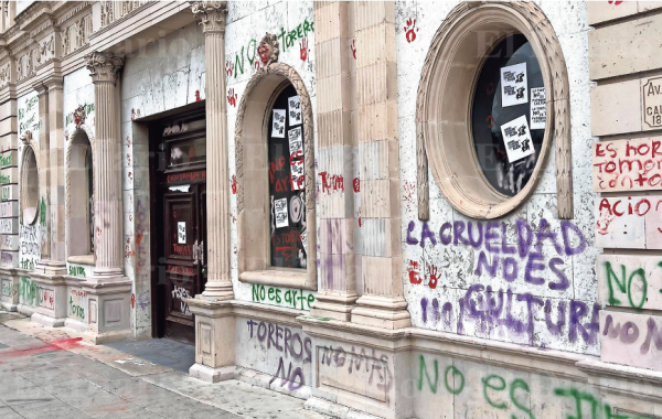 De acuerdo con el presupuesto de la Dirección de Mantenimiento Urbano, cerca de 200 mil pesos es lo contemplado para restaurar las paredes que fueron pintadas por manifestantes antitaurinos en el Palacio Municipal.