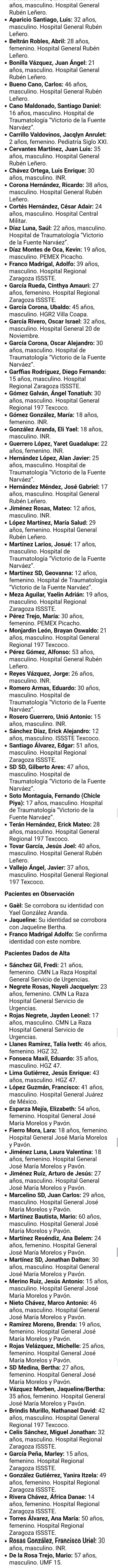 Lista completa de fallecidos y víctimas