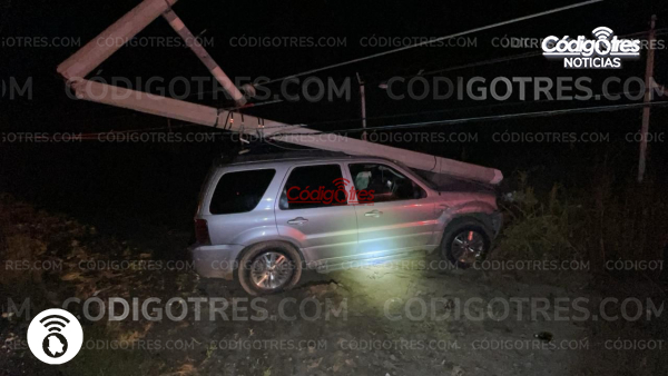 Un accidente vial se registró durante la madrugada de este domingo en la carretera libre Saucillo–Las Varas, a la altura del kilómetro 15+800, cuando una camioneta de la marca Mercury, modelo 2006 y color plata, se impactó de lleno contra un poste de la Comisión Federal de Electricidad (CFE).