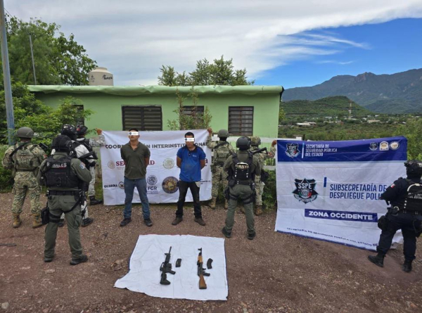 Posteriormente, en una segunda intervención en la misma zona, fueron detenidos Sergio “N”, de 23 años, y Eubcedio “N”, de 26 años. Ambos se encontraban en posesión de dos armas largas: un fusil calibre 7.62x39 mm y un fusil calibre 5.56 mm, cada uno abastecido con un cargador de 30 cartuchos.