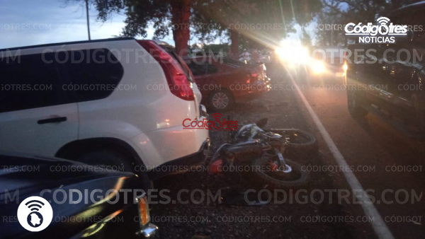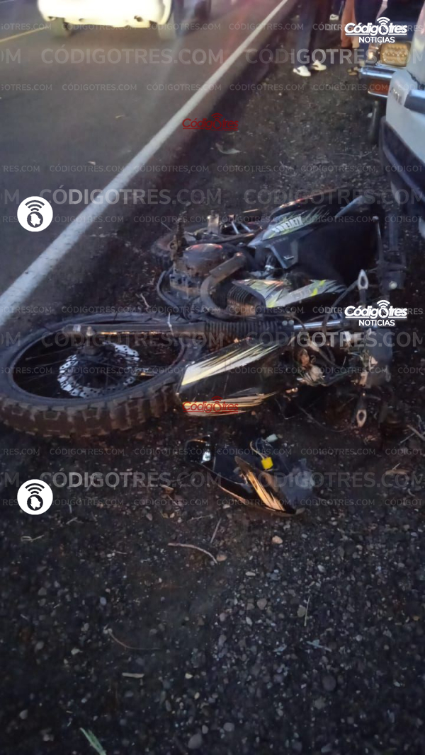 Cd. Saucillo, Chih.- La tarde-noche de este domingo se registró un accidente vial en la comunidad de Las Varas, donde una motocicleta y un vehículo Jetta color guinda se vieron involucrados, lo que movilizó a paramédicos y elementos de Tránsito Municipal.