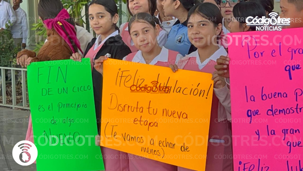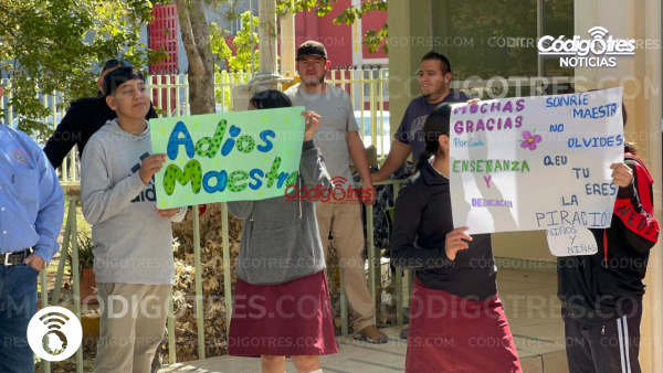 Algunos alumnos llevaron cartulinas con mensajes para ellas: ¡Se lo ha ganado!, Gracias por todo su gran apoyo, gracias por su trabajo, ¡Feliz jubilación! Disfruta tu nueva etapa (te vamos a extrañar), fin de un ciclo es el principio de uno nuevo, por el gran trabajo que hiciste, la buena persona que demostraste ser y la gran huella que dejaste, entre otras