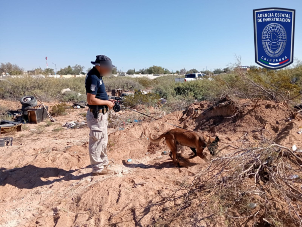 El operativo efectuado por elementos de la Agencia Estatal de Investigación (AEI), del Grupo K-9, personal de la Dirección de Servicios Periciales y Ciencias Forenses, contó con el apoyo de la Junta Municipal de Agua y Saneamiento (JMAS), que proporcionó maquinaria para remover la tierra.