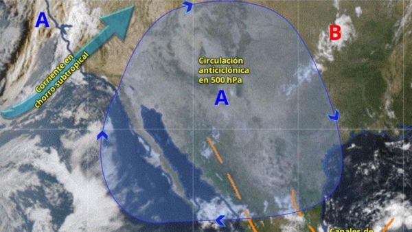 Un anticiclón en niveles medios de la atmósfera se extiende sobre la mayor parte del territorio nacional y mantiene cubierto al estado de Chihuahua, lo que ha bloqueado el ingreso del Frente Frío número 5.