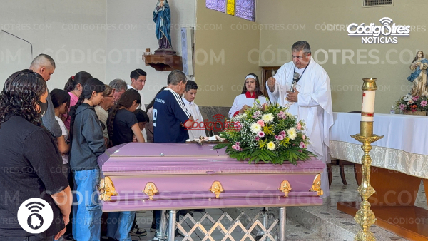 Una hora después, a las 4:00 de la tarde, el féretro morado de Rosa Isela entró al templo de el seccional de “Las Varas”, Saucillo. Flores, rezos y lágrimas llenaron el lugar. Sus hijos, aún confundidos por la tragedia, permanecieron cerca de su abuela, quien entre sollozos y entereza prometió cumplir la última petición de su hija: hacerse cargo de ellos.