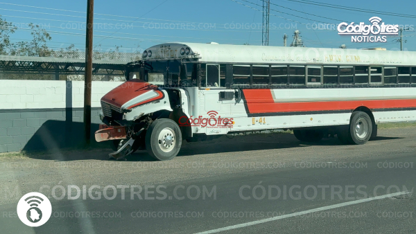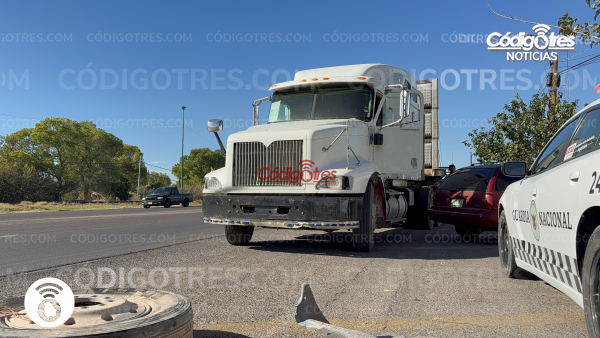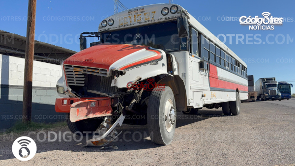 Delicias, Chihuahua.- Sobre la carretera federal número 45 a la altura de la caseta de la Guardia Nacional se registró un percance vial entre un tráiler y un camión de transporte urbano.